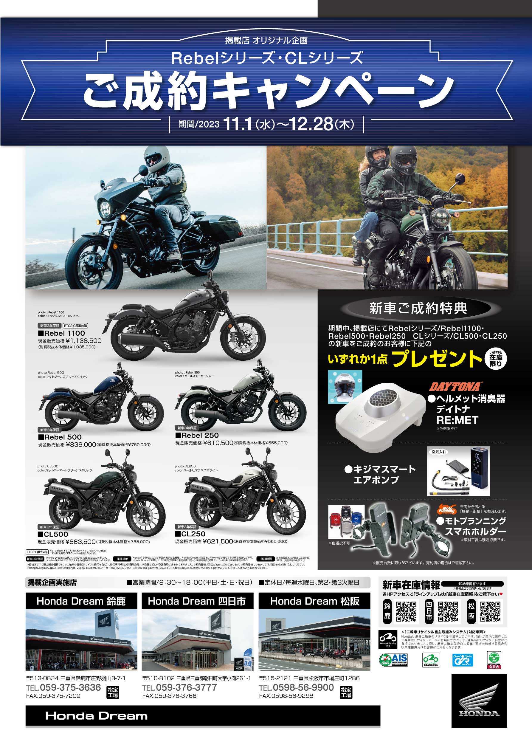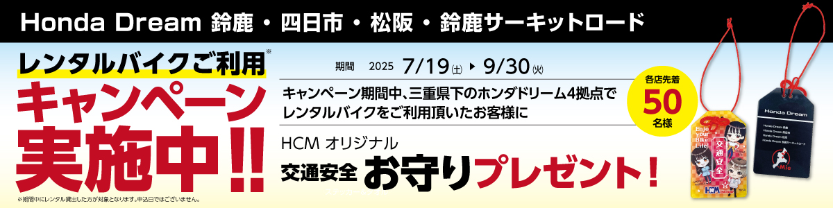 CAMPAIGN三重県下 Honda Dreamにてレンタルバイクキャンペーン実施中💫