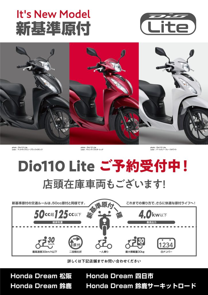 - NEW BIKENEWSDio Lite 新基準原付 ご予約受付中