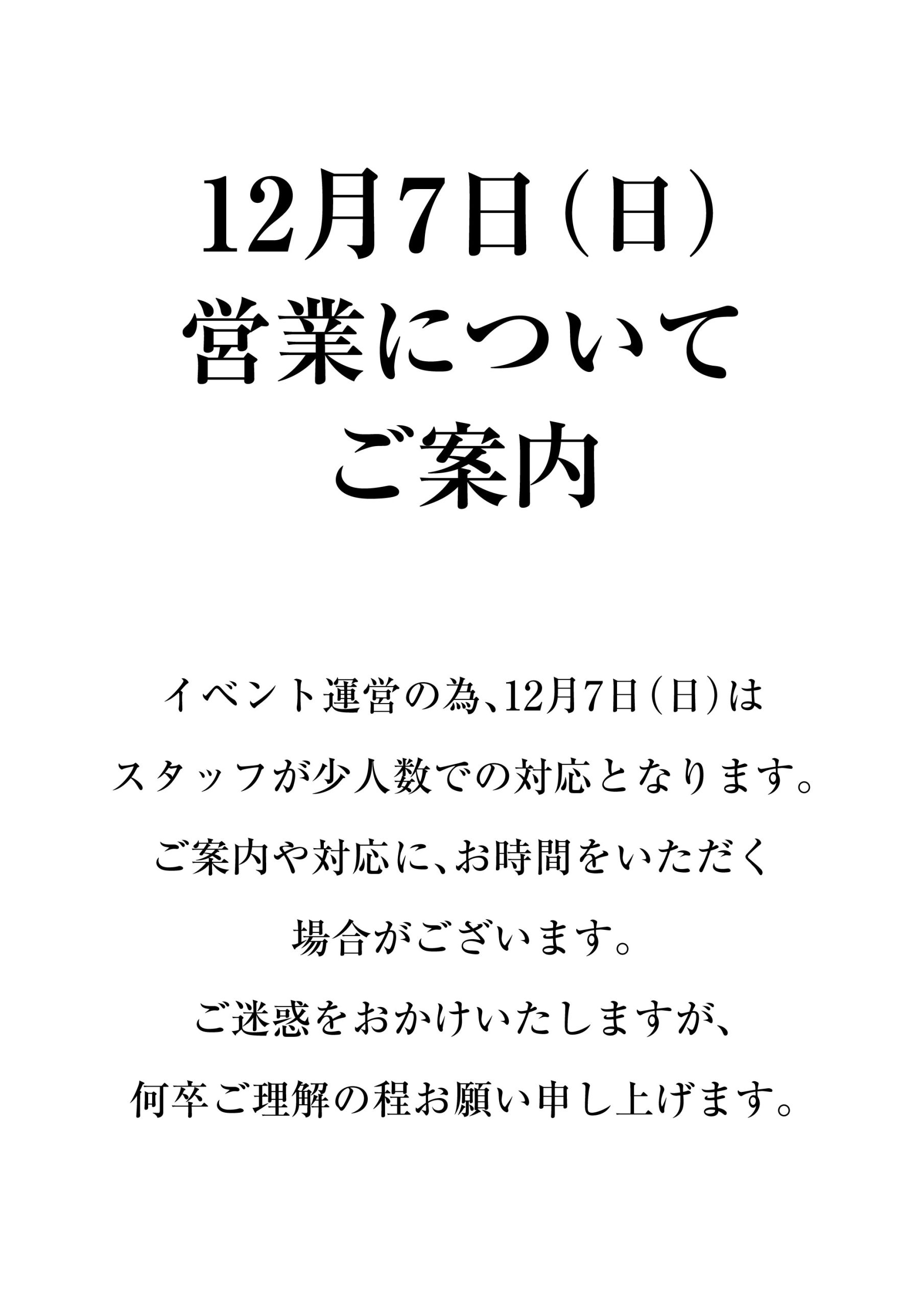 - NEWS12月7日(日)営業についてのご案内